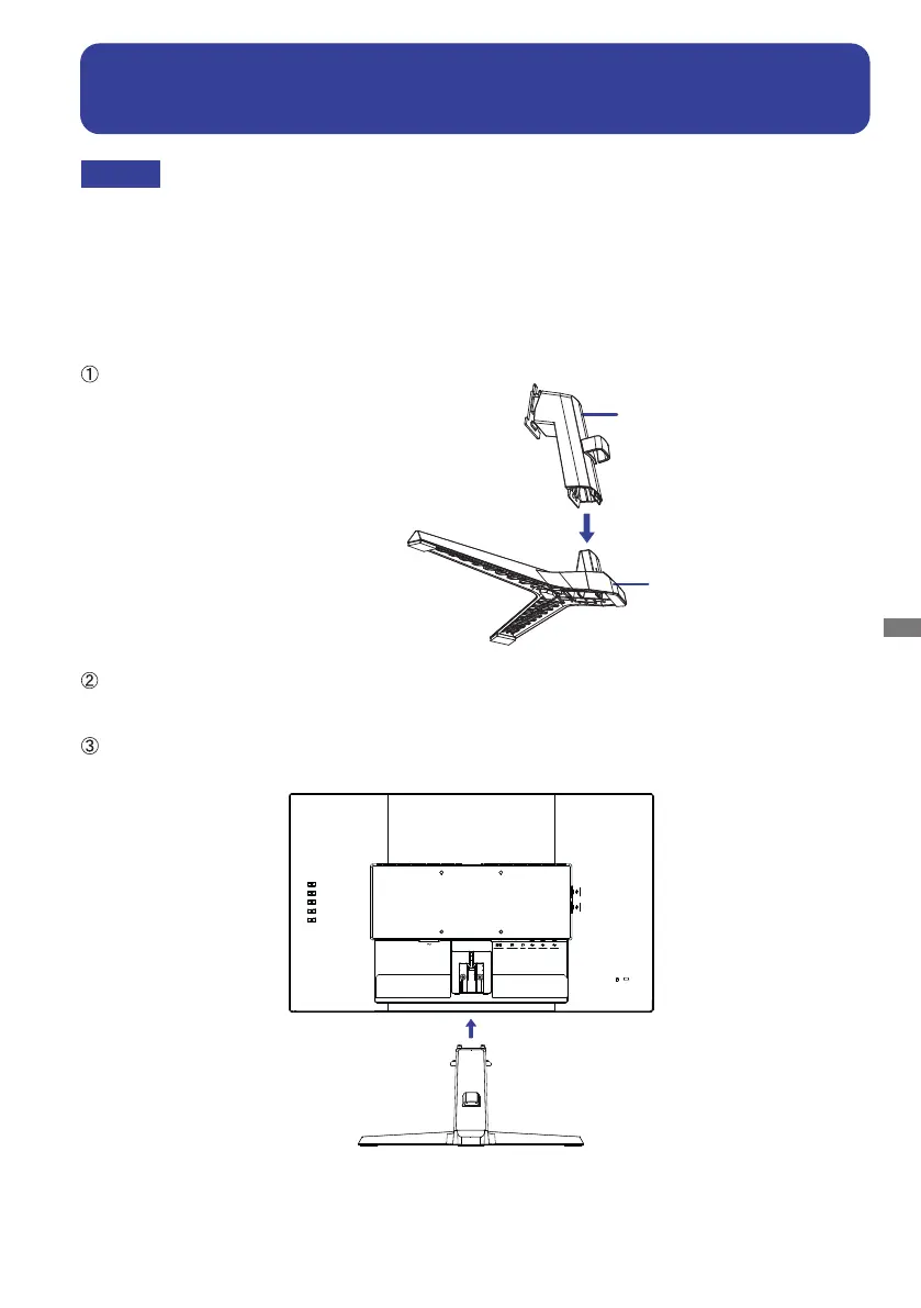 Houd de monitor vast en duw de monitorvoet totdat deze vastklikt.