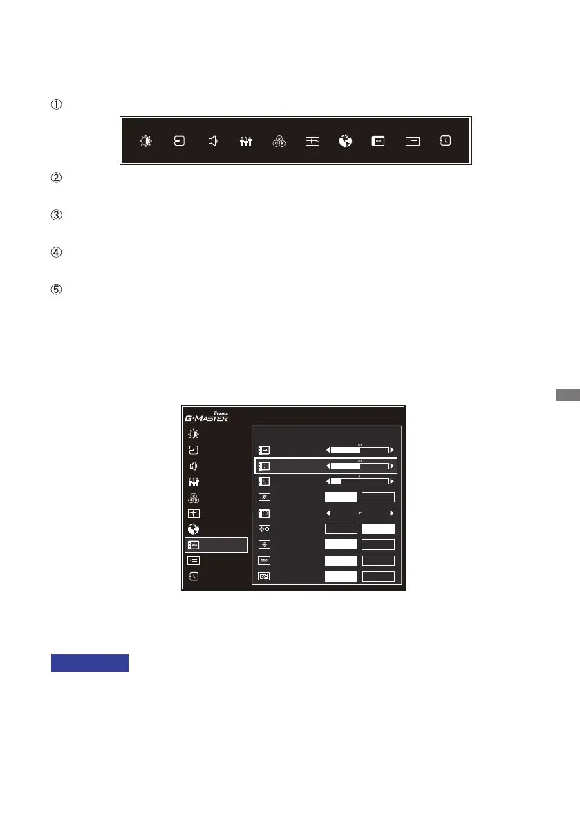 Als tijdens het aanpassen een tijdlang geen knop wordt ingedrukt, verdwijnt de OSD als de tijd die