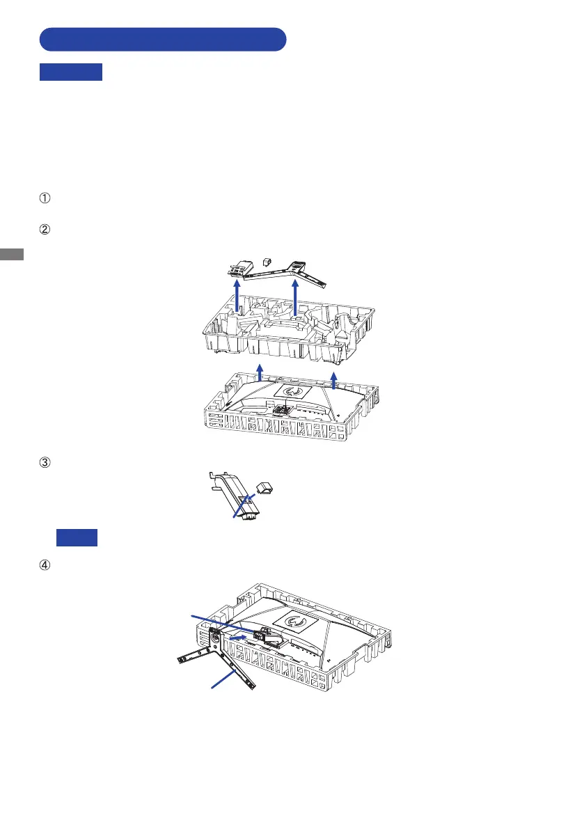 Hold the monitor and install the Stand-Neck to the monitor until it clicks to secure.