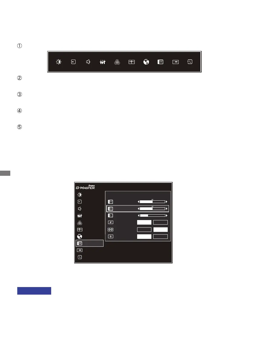 Wilt u bijvoorbeeld de verticale positie van OSD aanpassen, selecteer dan het menu-item Menu