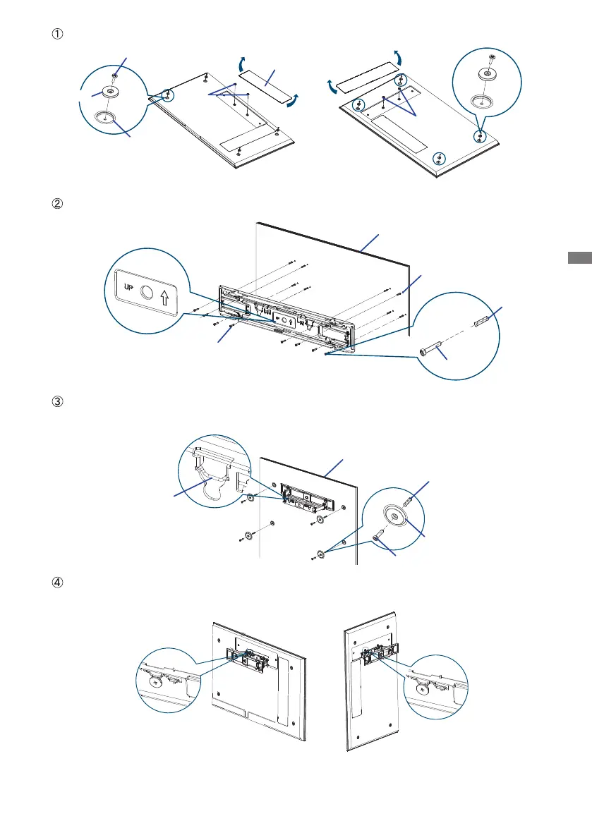 display back cover screws and bracket hook slots.