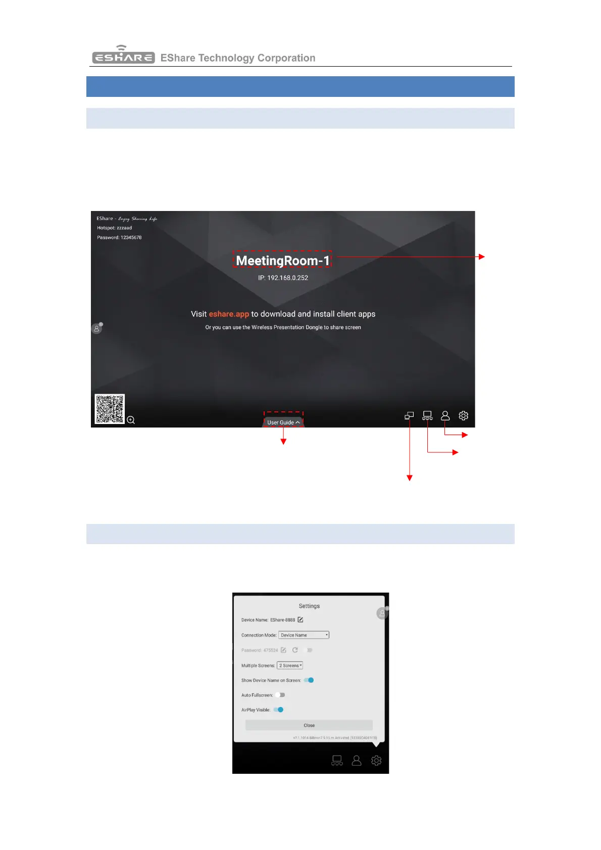 network name, QR-code, device name, IP address, quick guide and so on. In the bottom