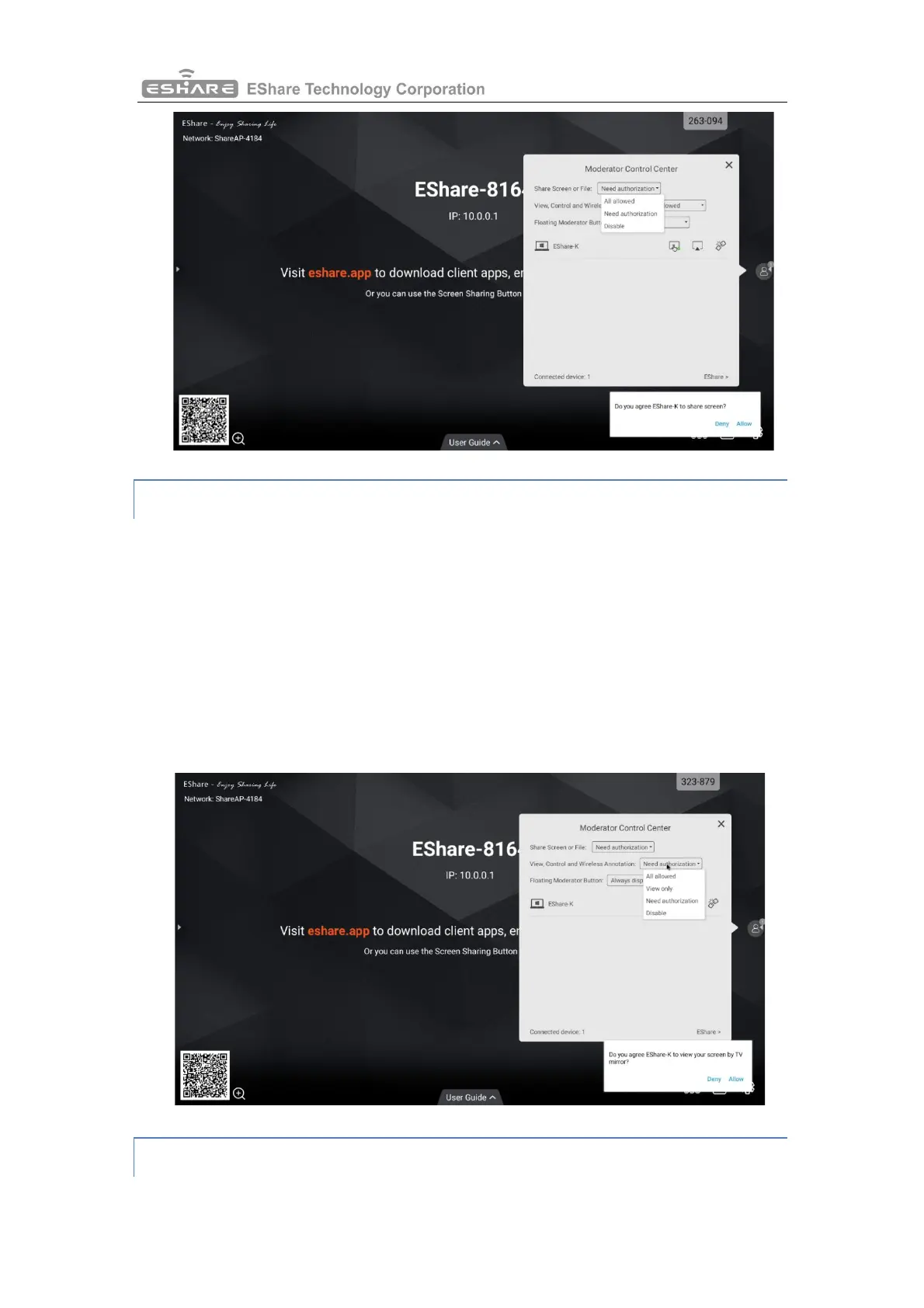 ⚫ Allowed: client devices can view and control the large display, can do annotations in TV