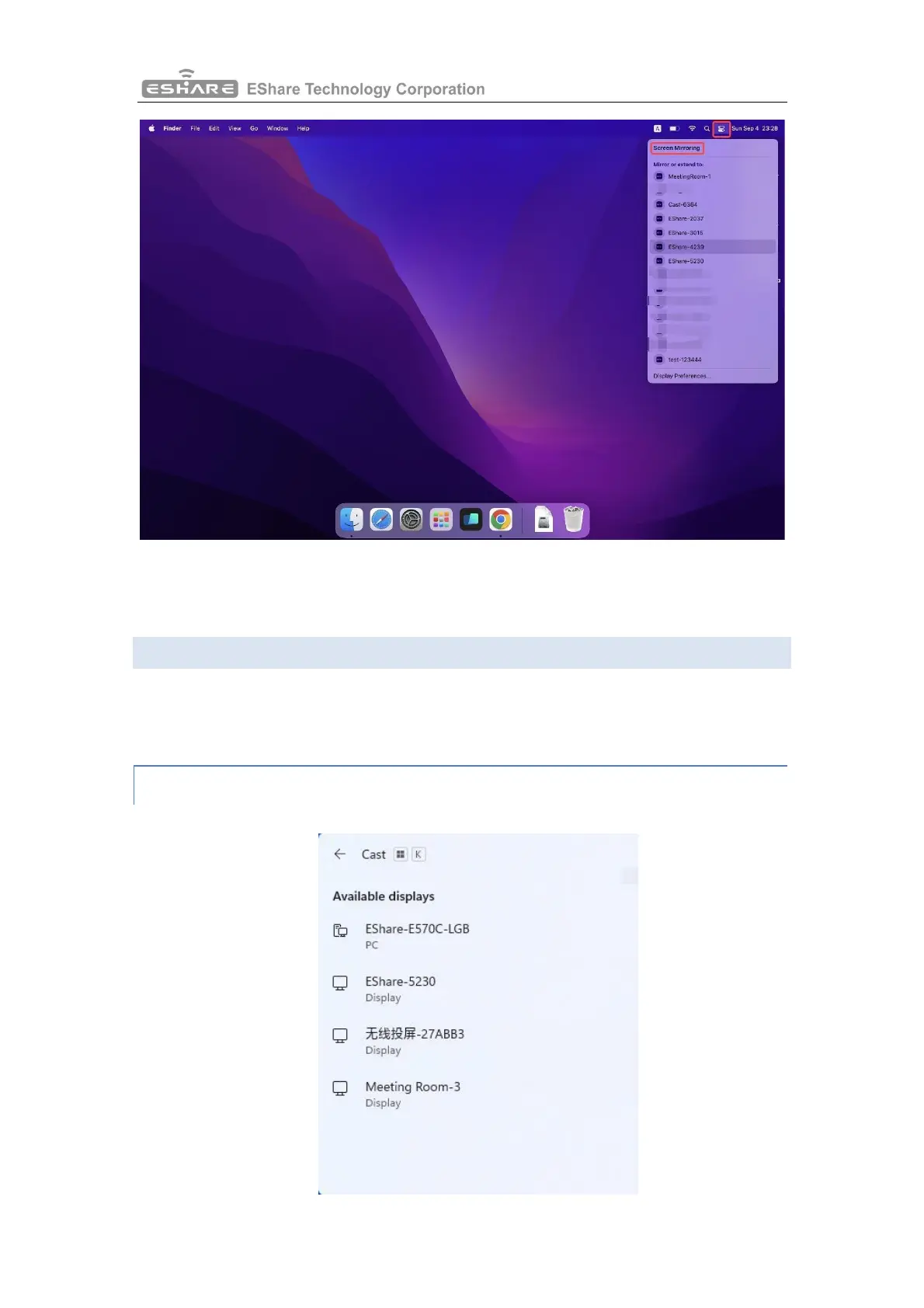 Tips: If the AirPlay Visible is disabled, users need to install EShare App to share screen.