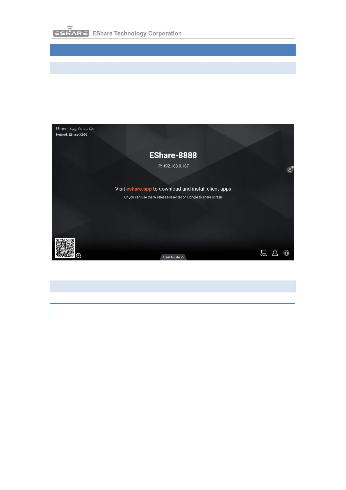 network, and then launch “ESharePro”. Next, scan QR-code or visit “eshare.app” to download