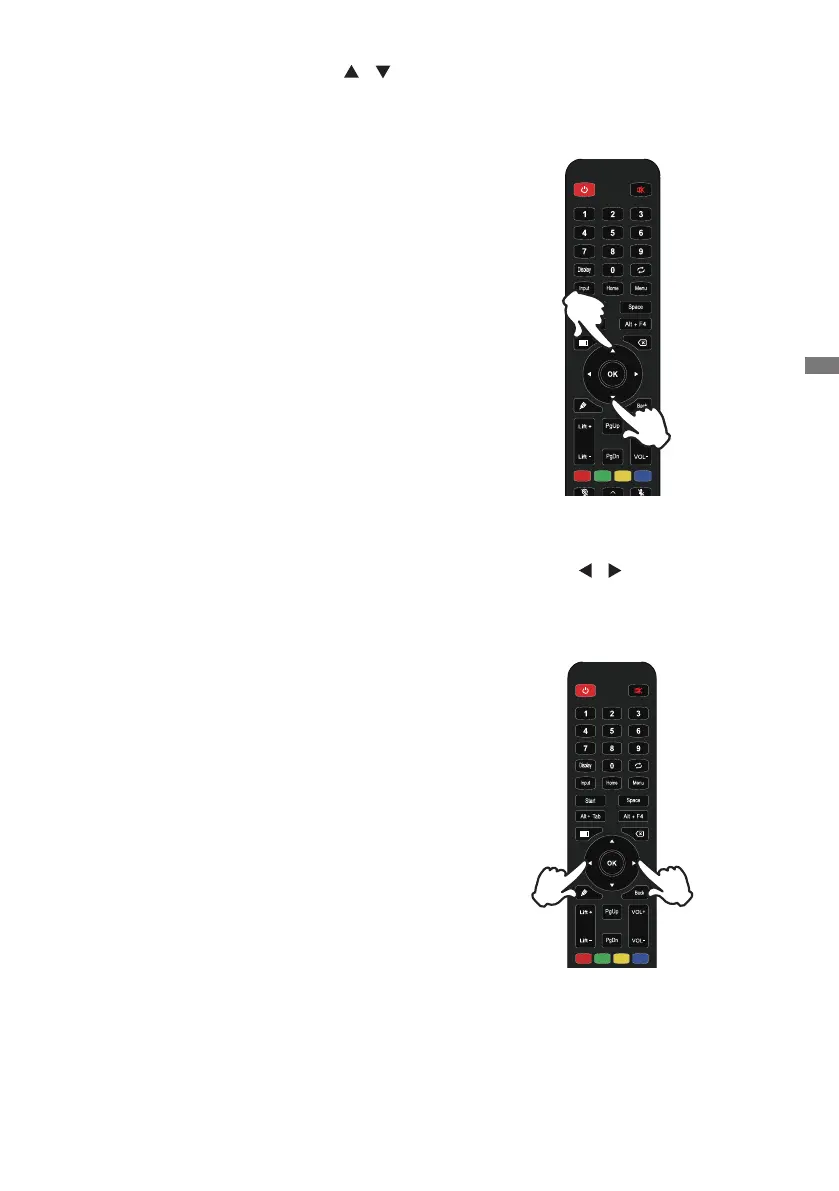 Select menu or setting, or perform the adjustment by pressing the / Button on the remote
