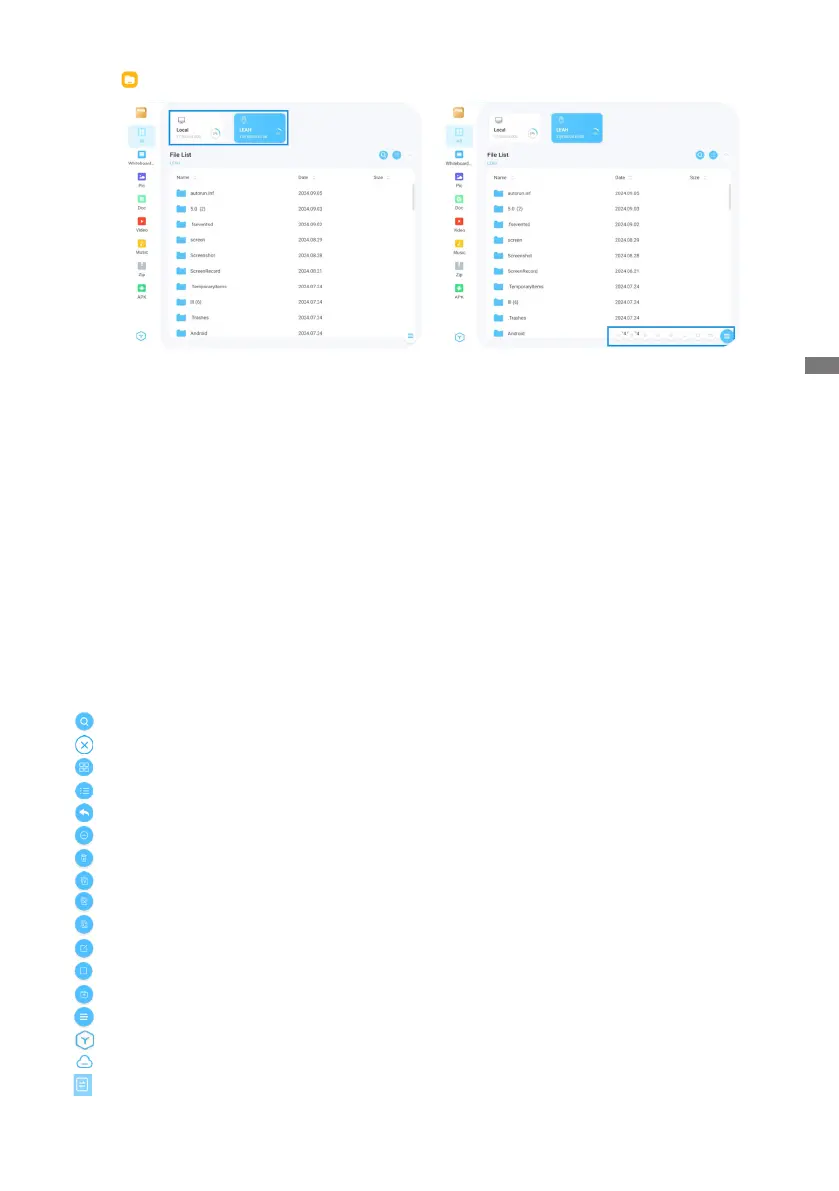 Browse the les stored in the internal storage device, the USB storage, Public Cloud, Remote File