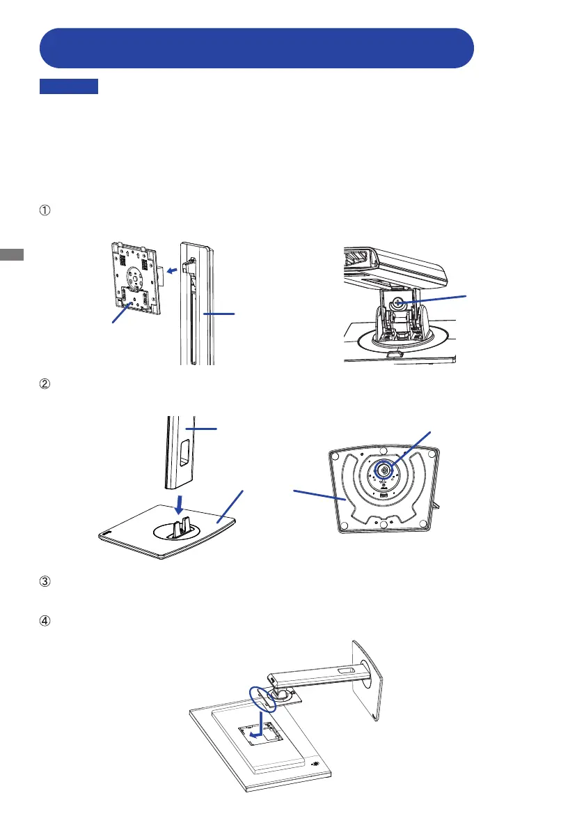 Attach the Stand-Neck to the VESA Plate and then tighten the ’thumb screw’ with the provided