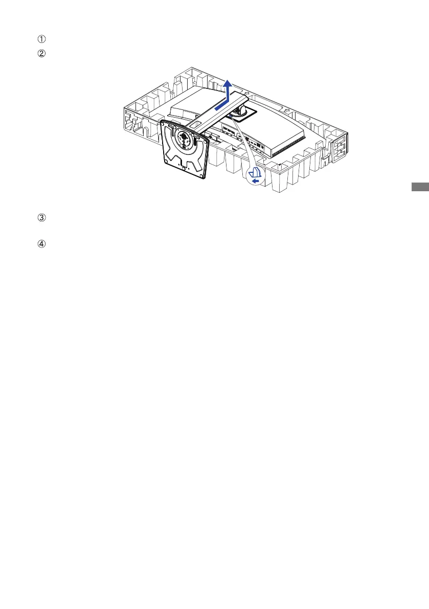 Put the front cushion on a at surface and place the monitor with face down on it.
