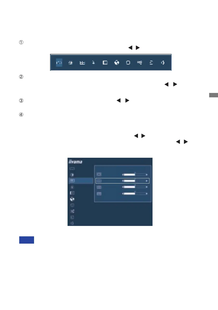 An adjustment page appears after you press the ENTER Button. Then, use the