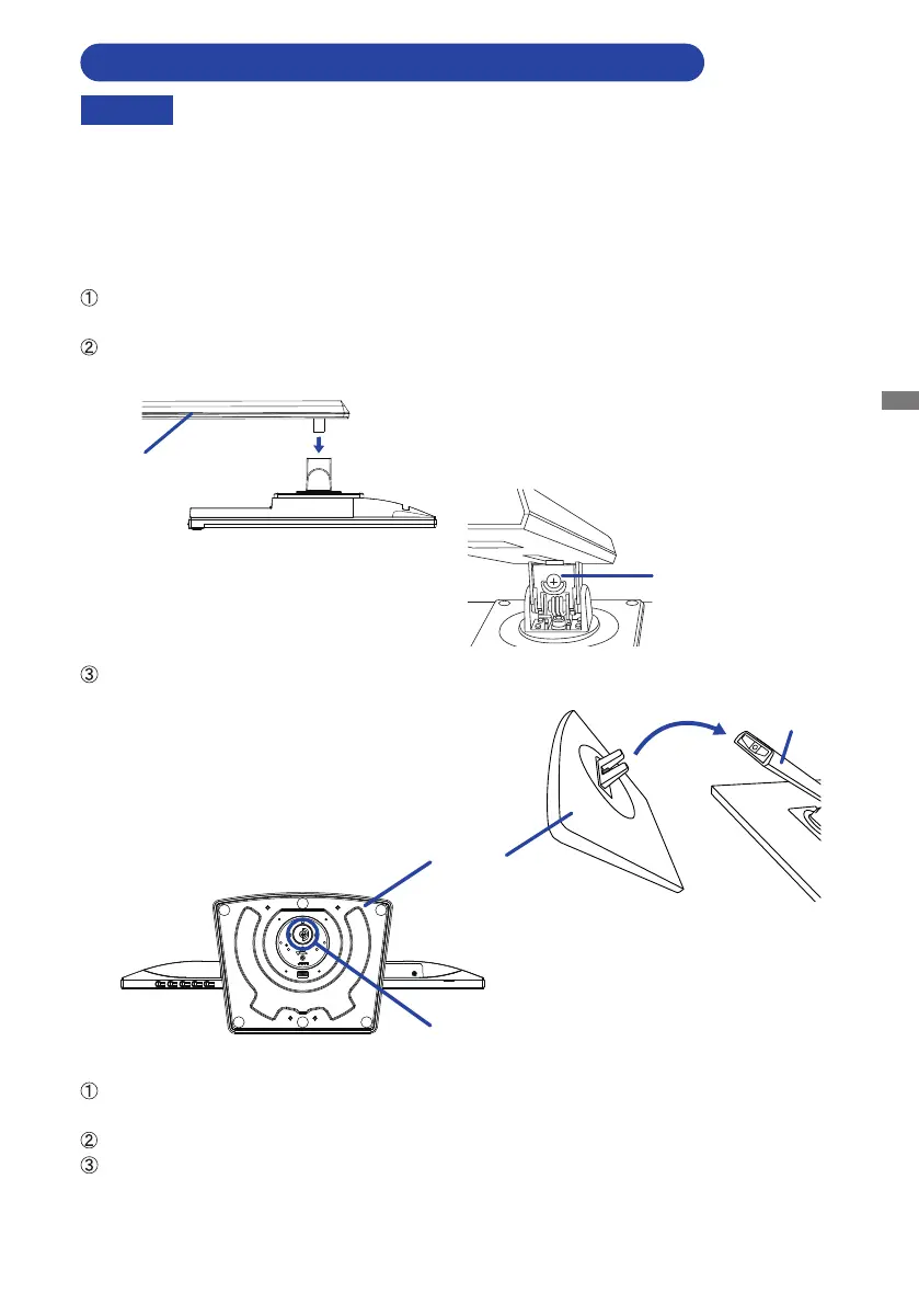 Install the Stand-Neck to the monitor and then tighten the ’thumb screw’ with the provided