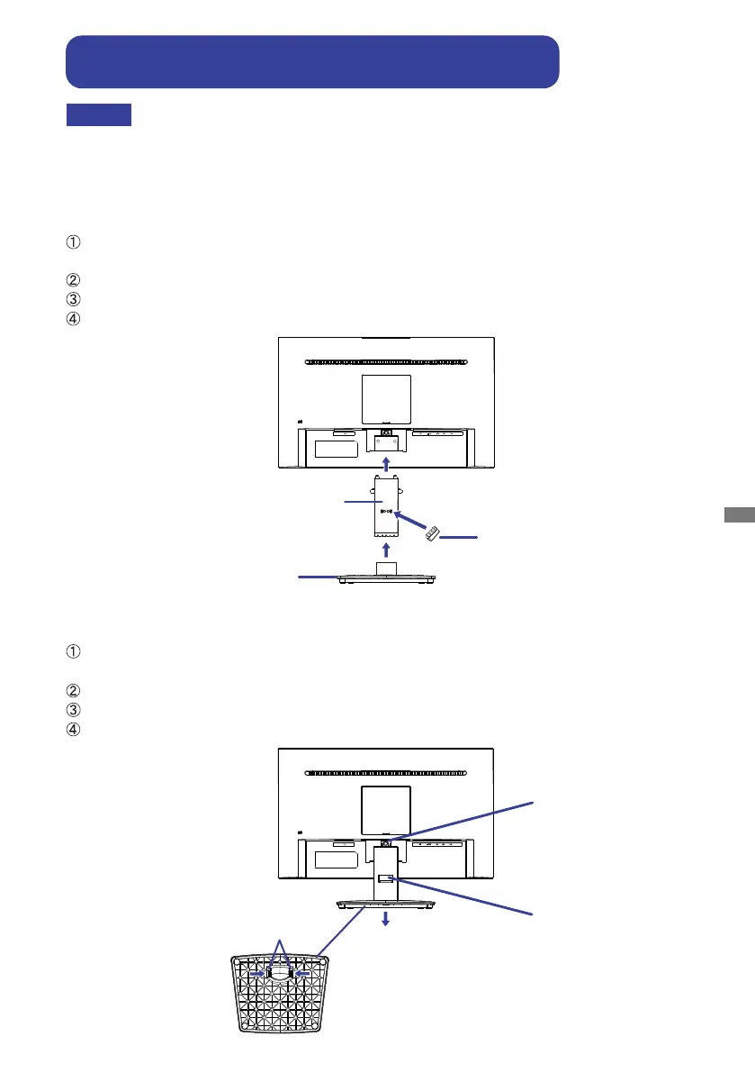 Houd de Clips naar binnen gedrukt om de Monitorvoet eruit te halen.