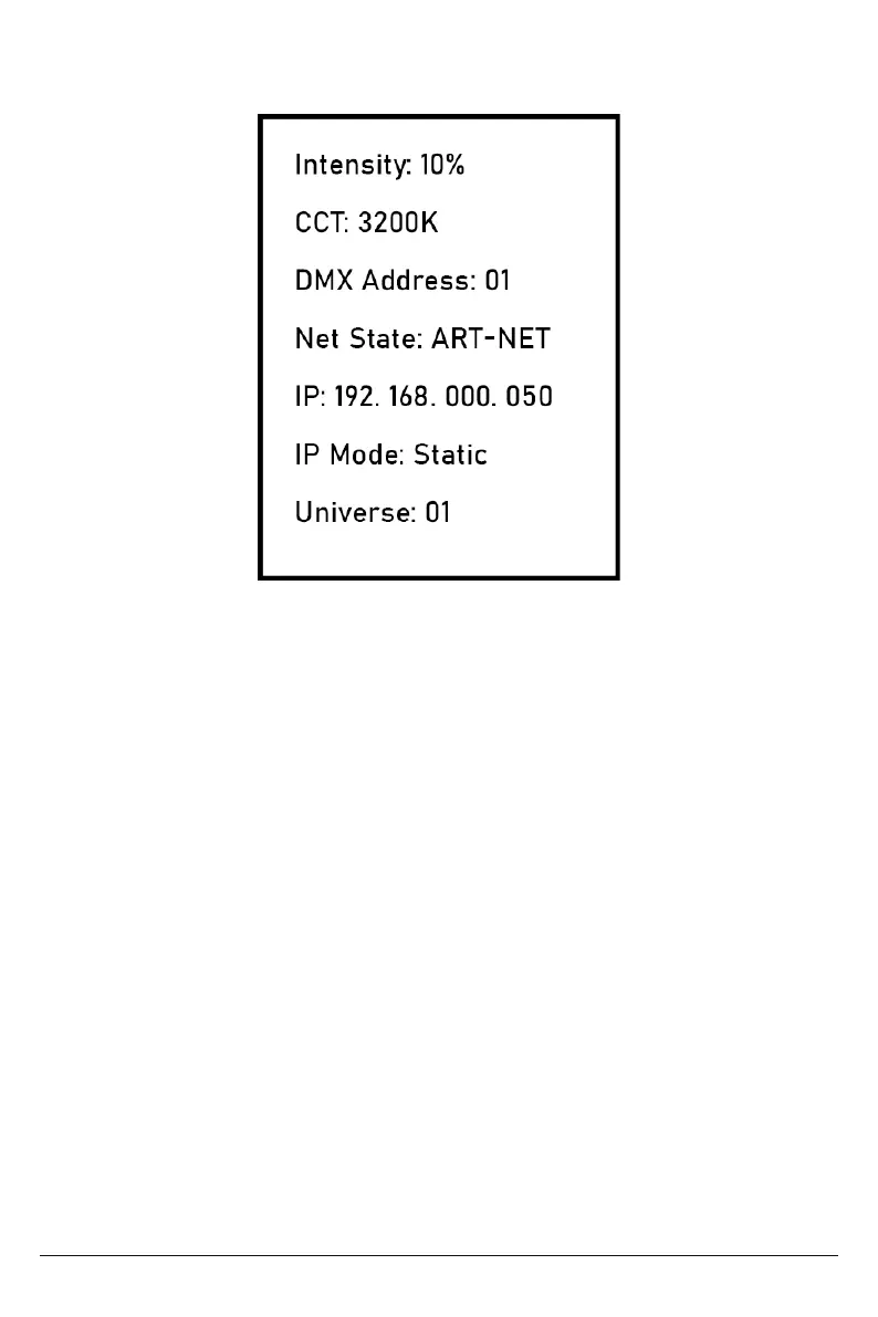 • When the light receives DMX signal a green dot will appear indicating that DMX signal is