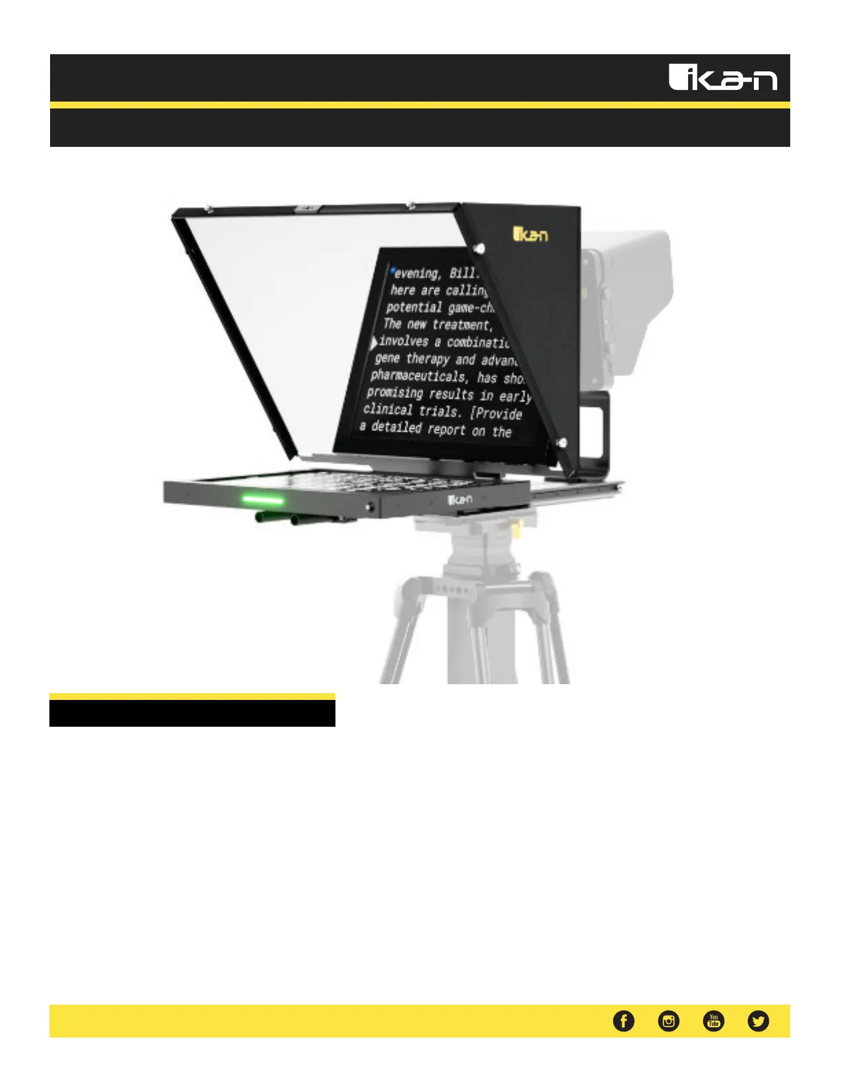 Ikan’s professional teleprompter series is designed for a quick and easy setup to work efficiently in studio or broadcast