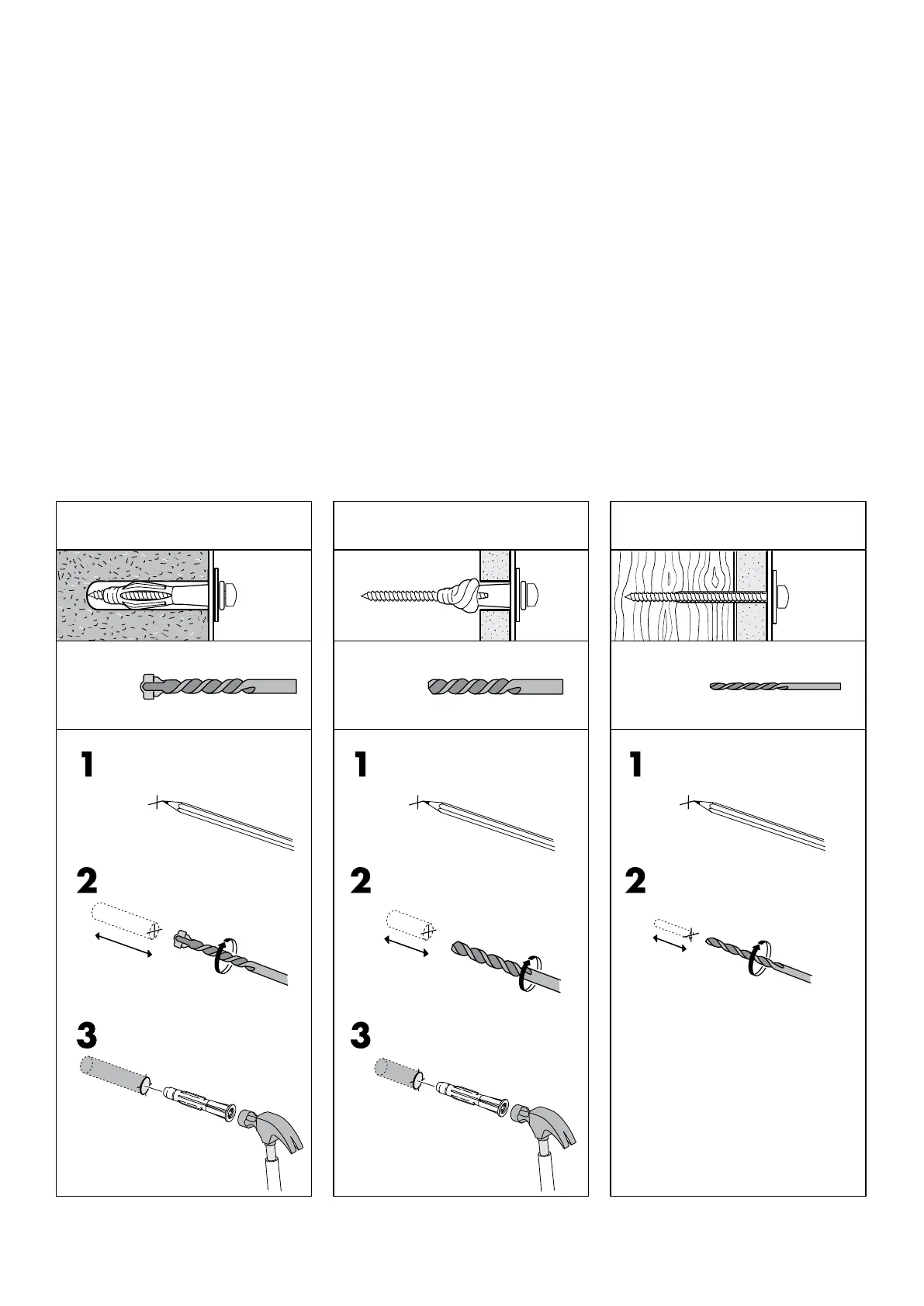 제공된 나사와 플러그는 대부분의 단단한 벽(A)