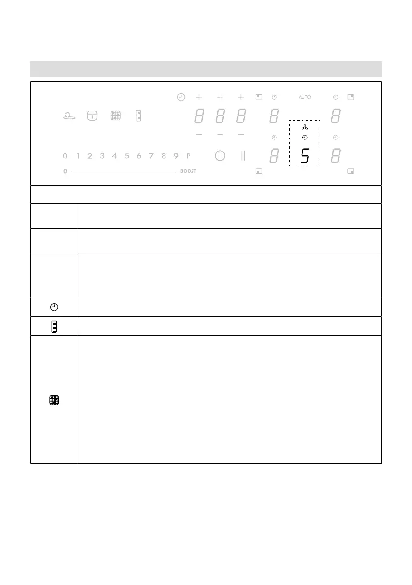 Wert auf einer beliebigen Kochzone einstellen. Drücken Sie erneut für 5 Sekunden auf die Haubensteuerungen