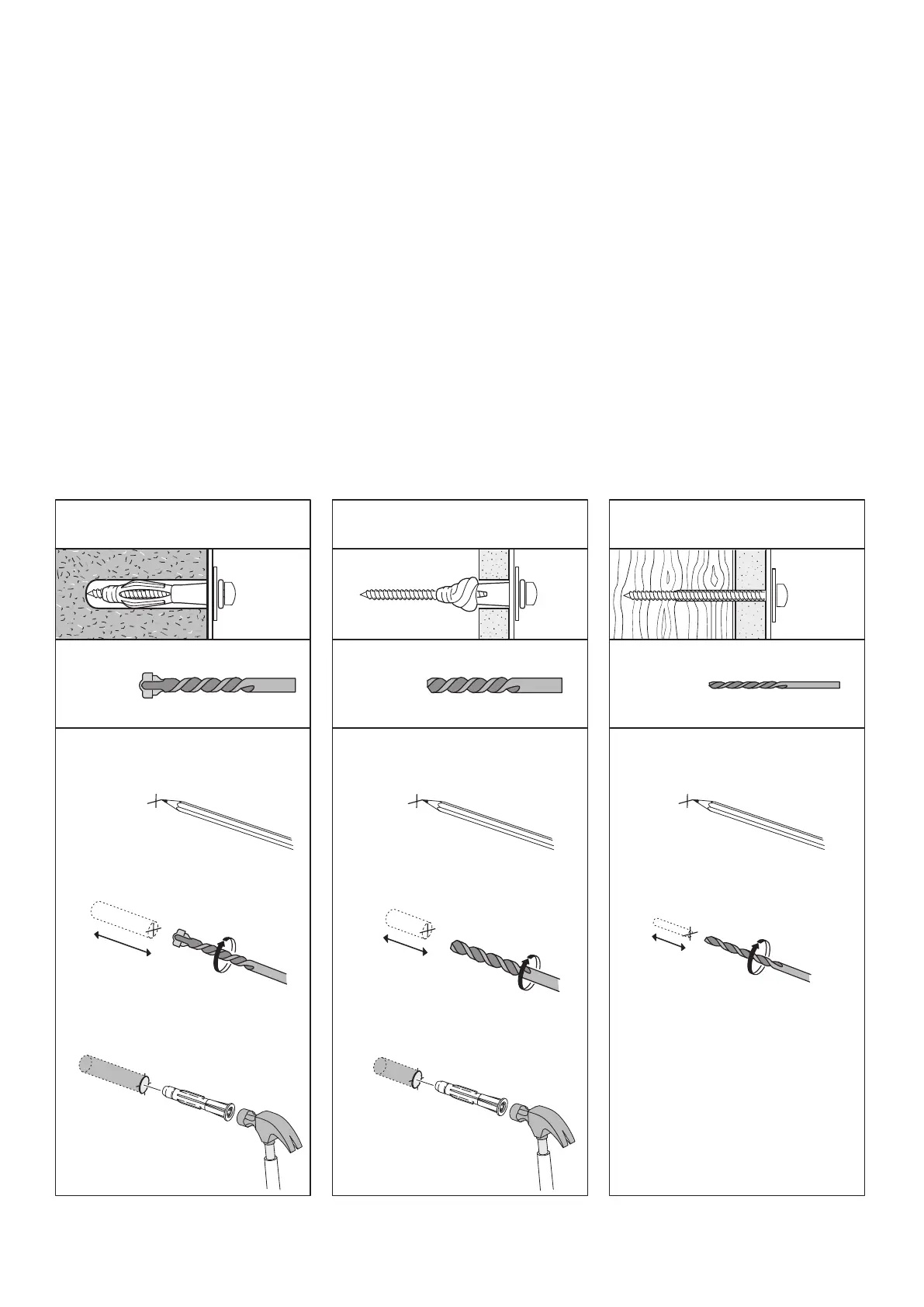 제공된 나사와 플러그는 대부분의 단단한 벽(A)