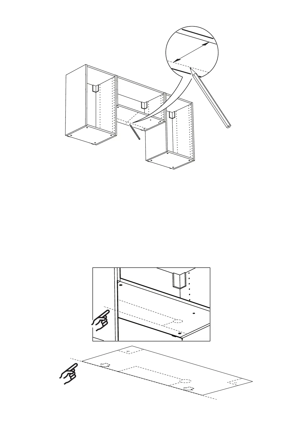 Then, draw a horizontal line 330 mm (Y) from the front edge of the cabinet. This horizontal