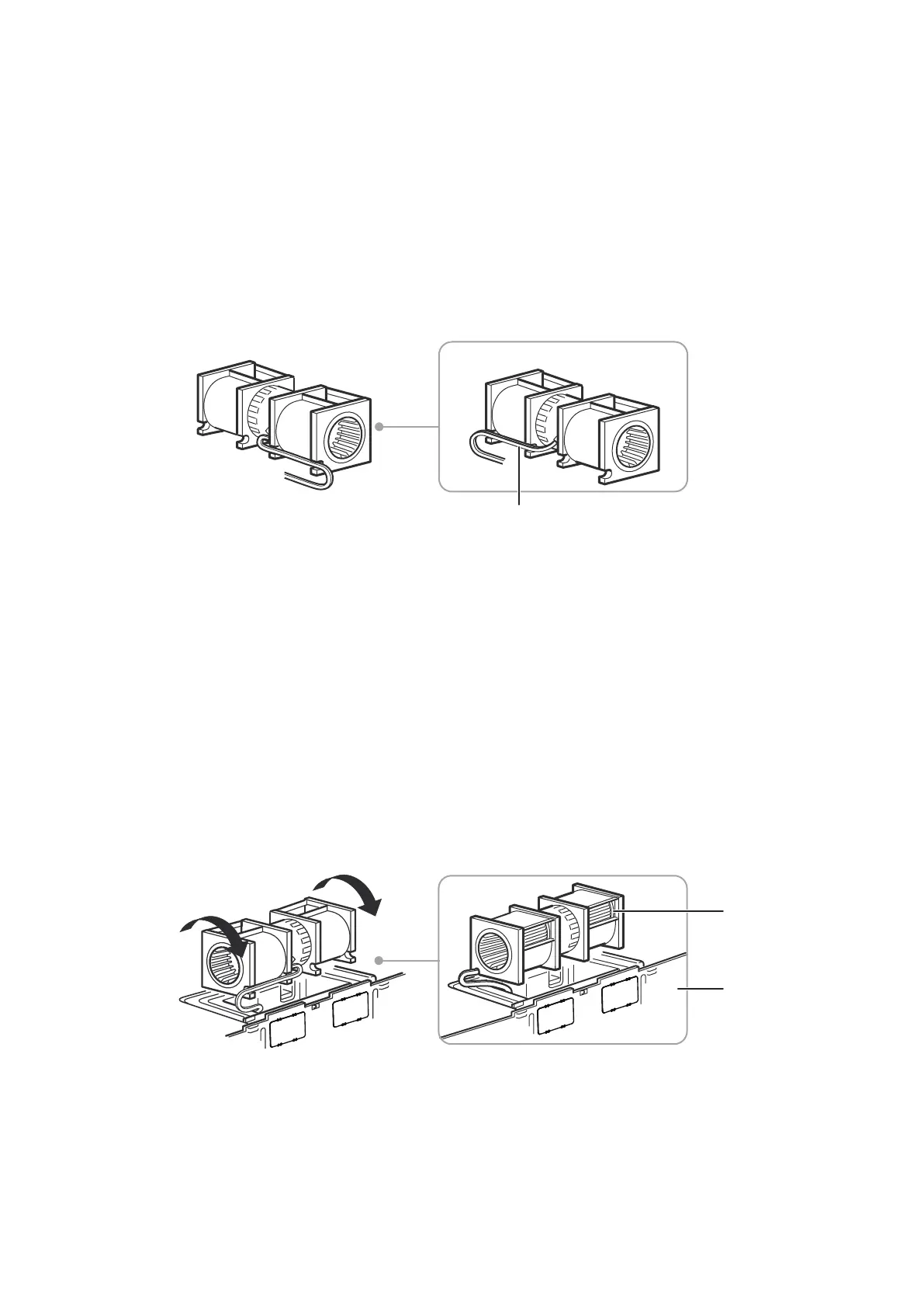 6 Roll the blower unit 90°, so that the fan blade openings are facing out the back of