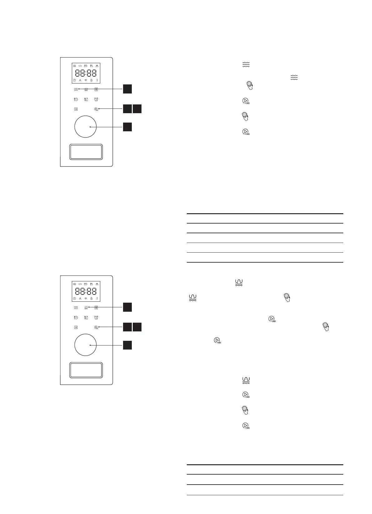1. Πατήστε το κουμπί « Μικροκύματα». Η οθόνη LED εμφανίζει