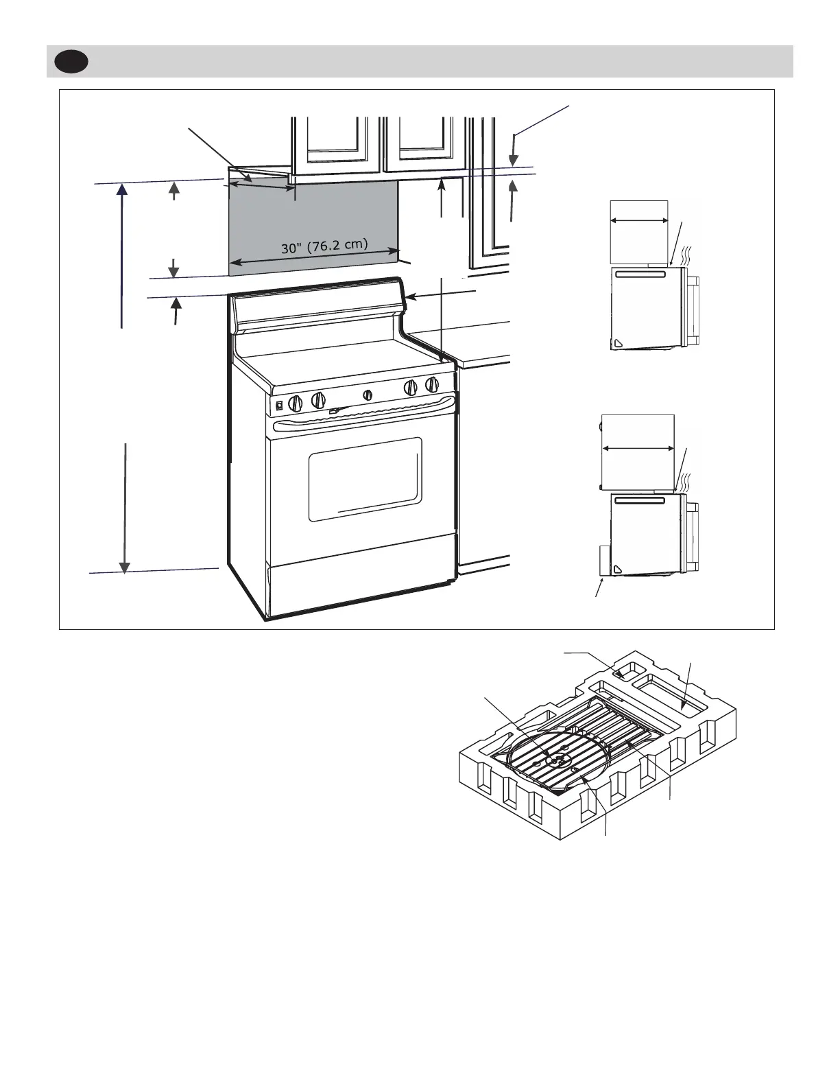 • Elespacioentrelosgabinetesdebeserde30"(76,2