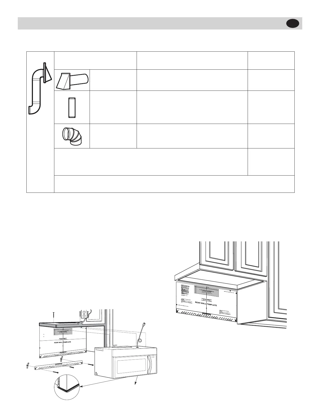 La siguiente tabla contiene un ejemplo de una posible instalación de un sistema de conducto de extracción.