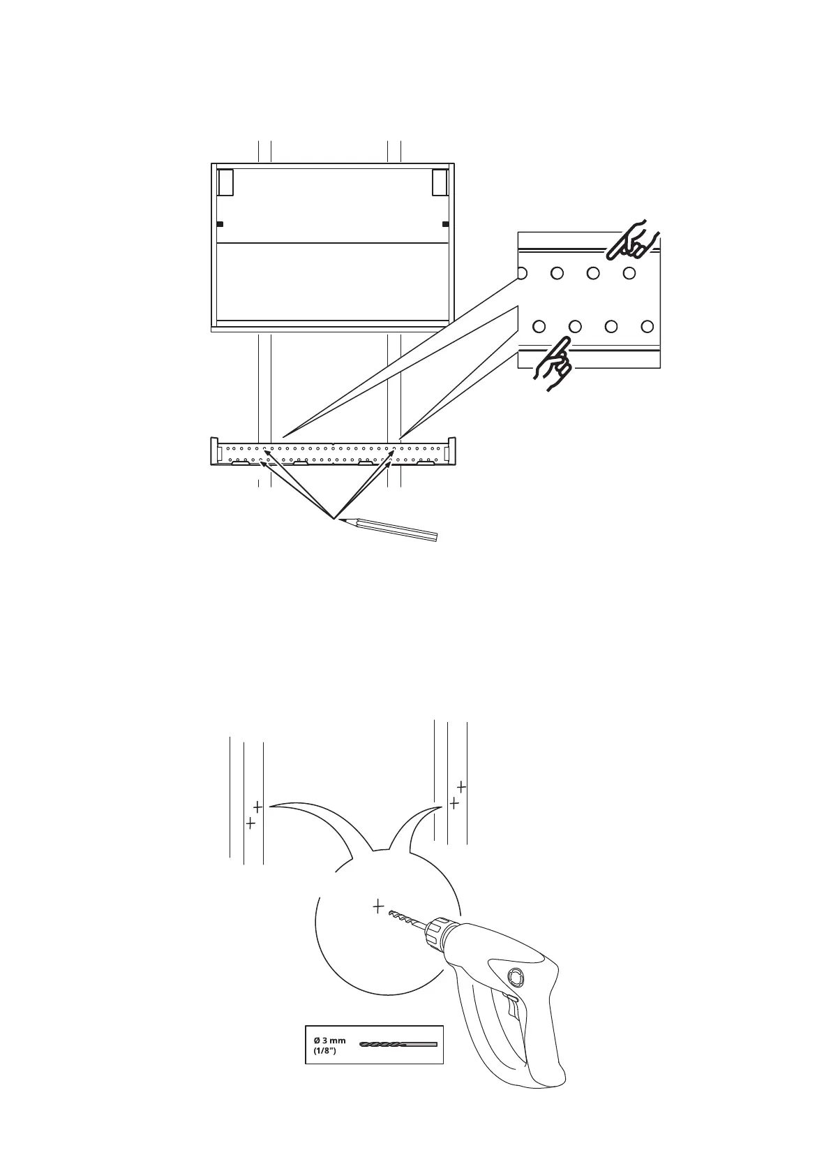 wall stud. It is recommended to place two screws on the wall stud, with the remaining