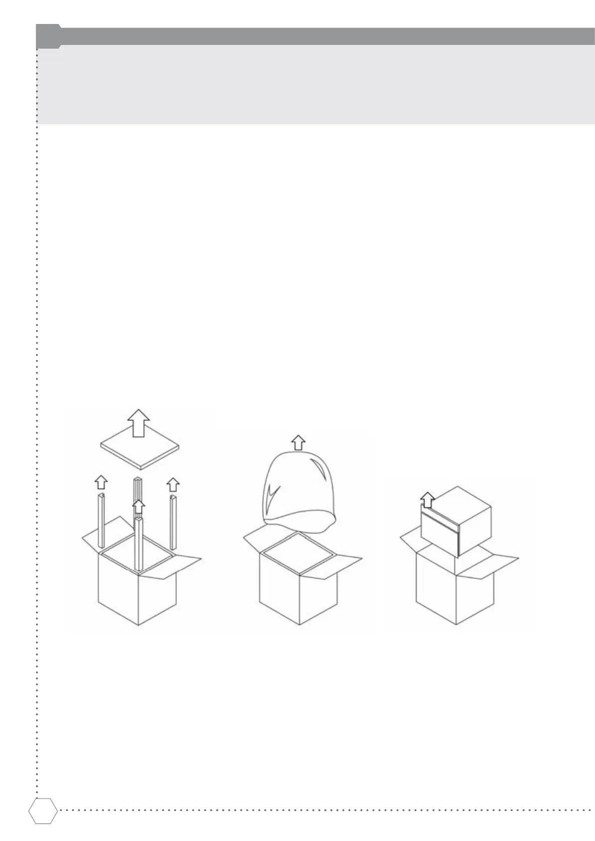 Open the top of the box by bending back the side fl aps to operate more easily, then remove the top cover and