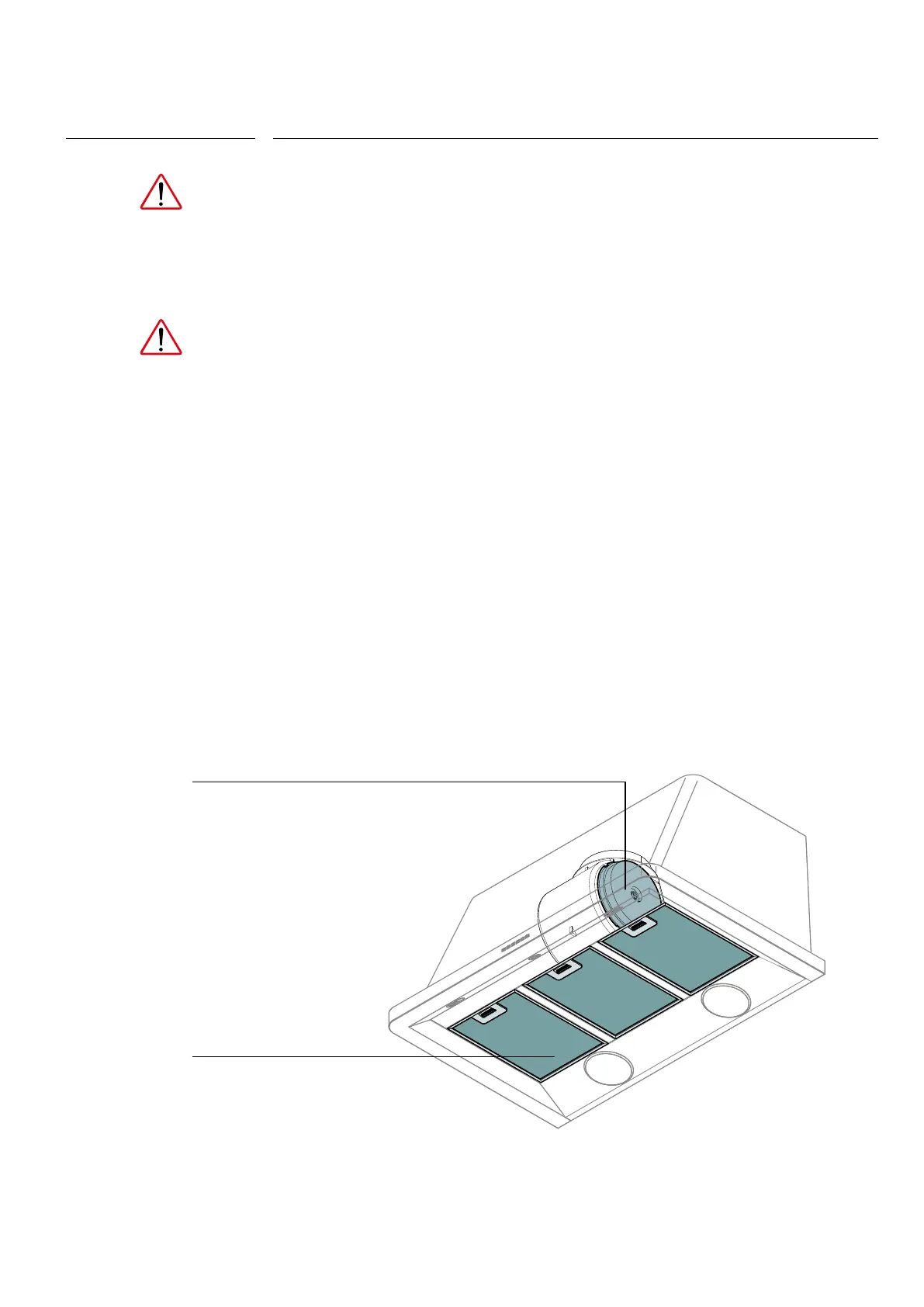 The INSIDE and the OUTSIDE of the hood should be cleaned solely by using a damp cloth