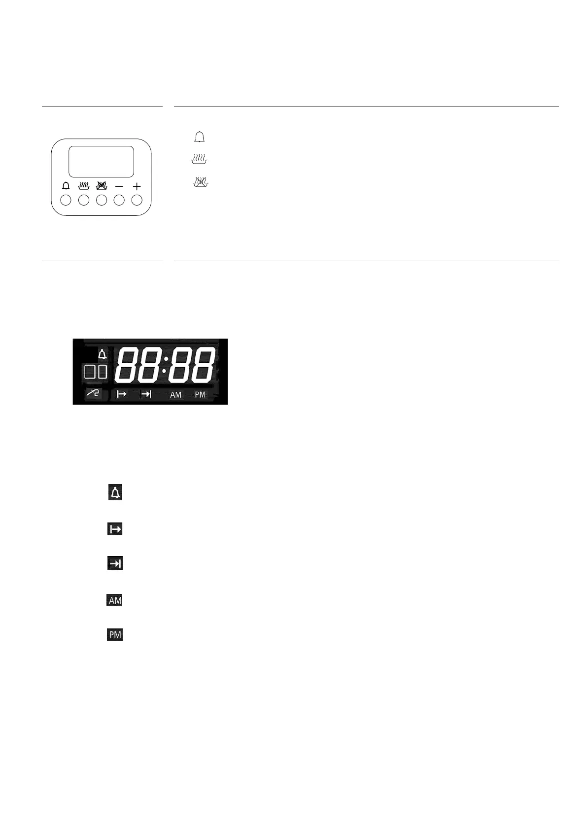 Icoon secundaire oven [2]. Bij oplichting geeft de display de temperatuur en de instel-