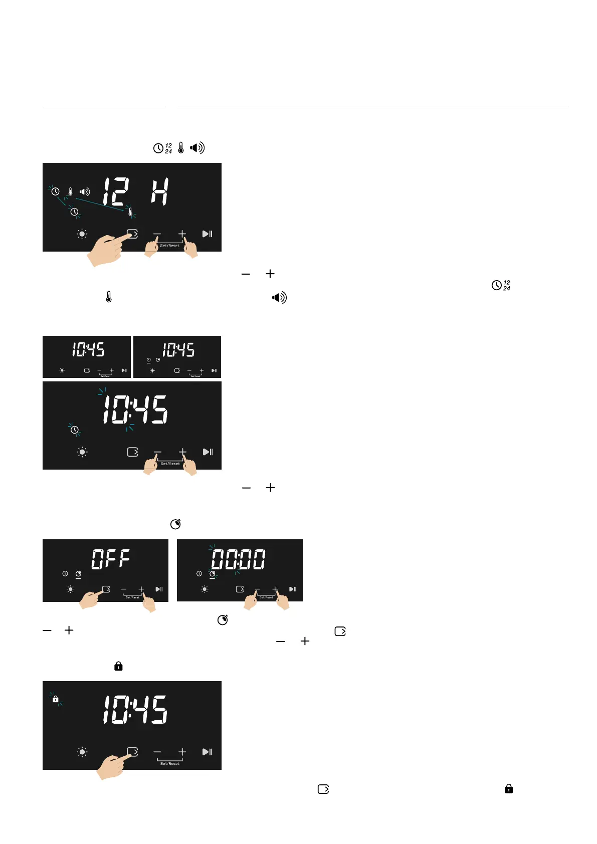 gaat u naar de modus die is beschreven in hoofdstuk “1.Eerste Inschakeling” voor het instellen van de 12H/24H , ijd, de Tem-