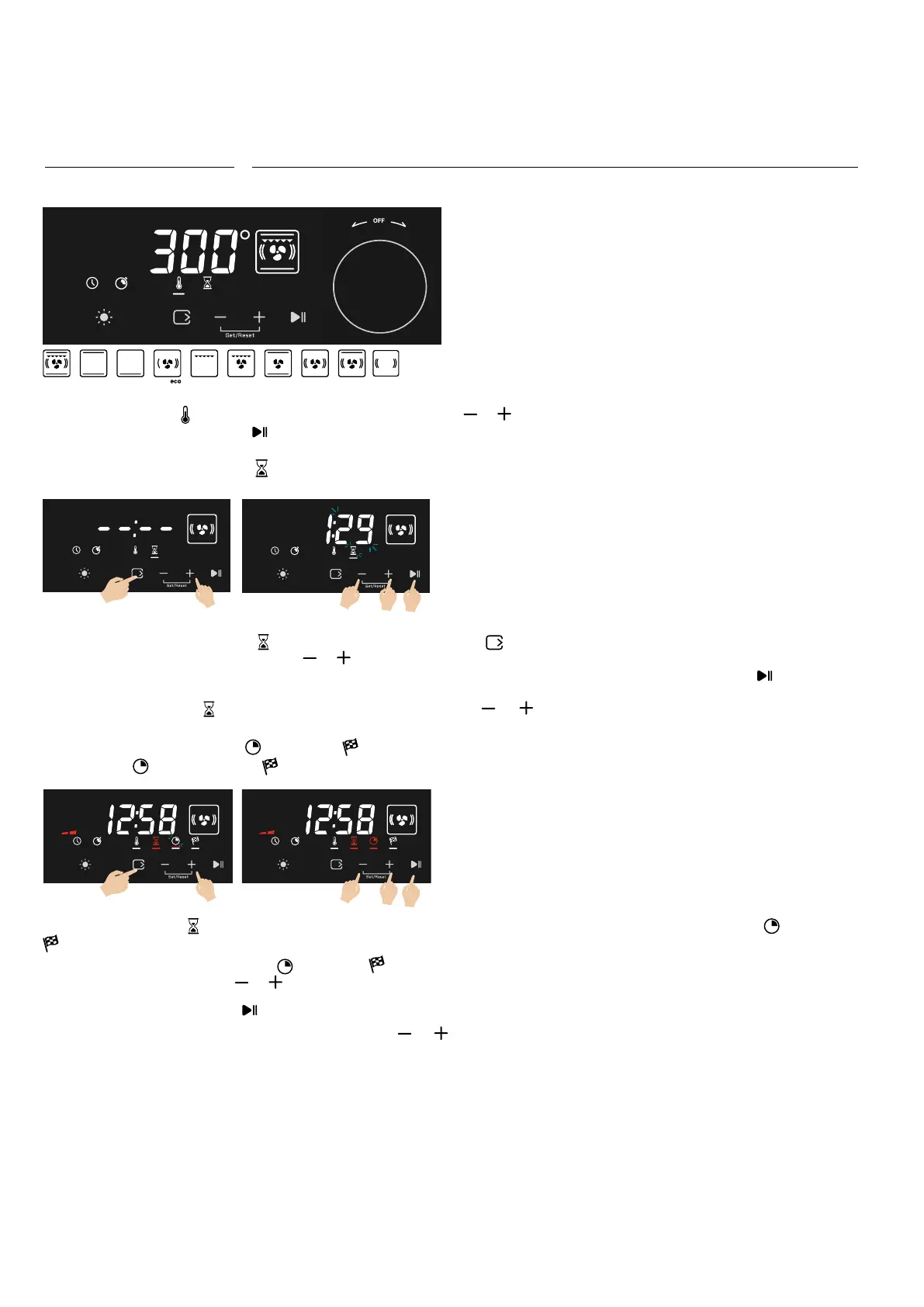- Door de Functie Bereidingsduur te selecteren met de Functietoet , is het mogelijk om de waarde voor de uren en dan de