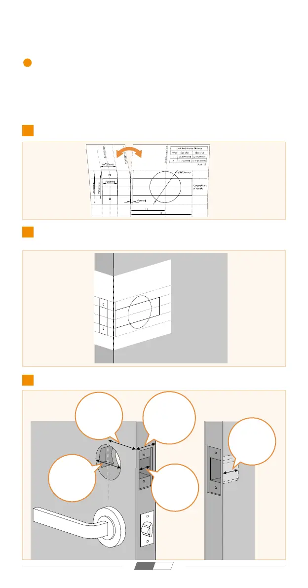 Fixez le gabarit de perçage à la porte. Assurez-vous que les lignes centrales sont