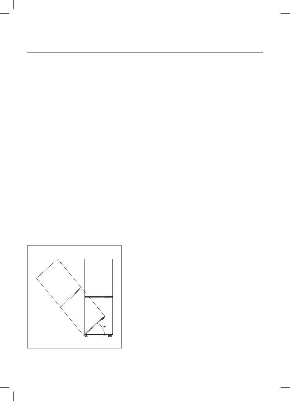 • Never tilt the refrigerator beyond 40° when moving or installing