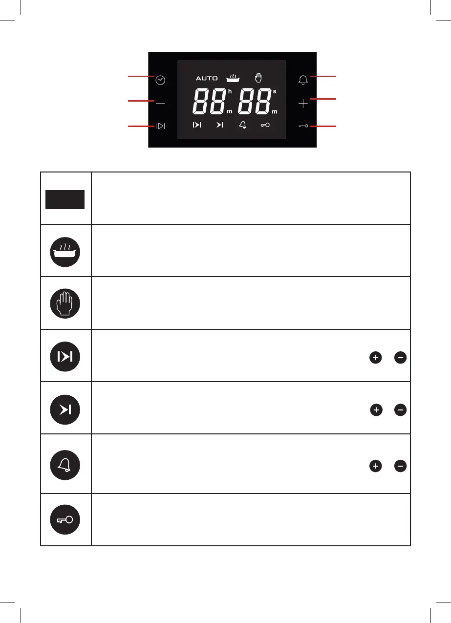 • Flashing: End of cooking time adjustment mode, adjustment possible by