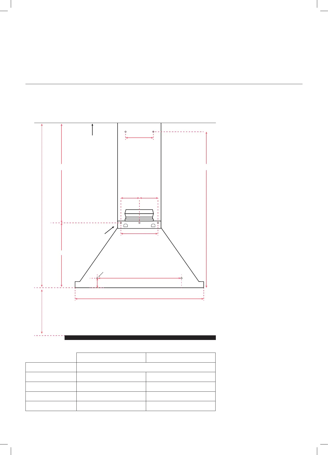 2. Mark the location for the ue cover wall mounting brackets and cooker hood mounting points