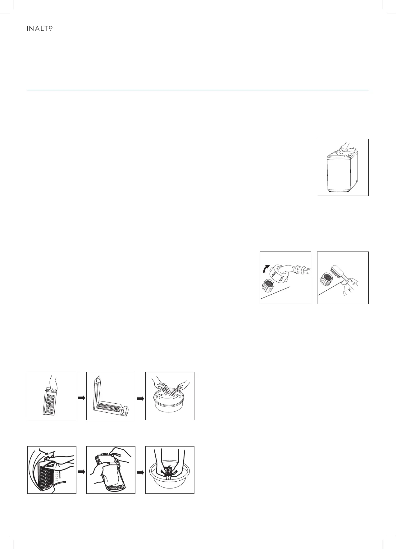 with diluted non-abrasive neutral detergents when necessary. If there is any water overow, use the