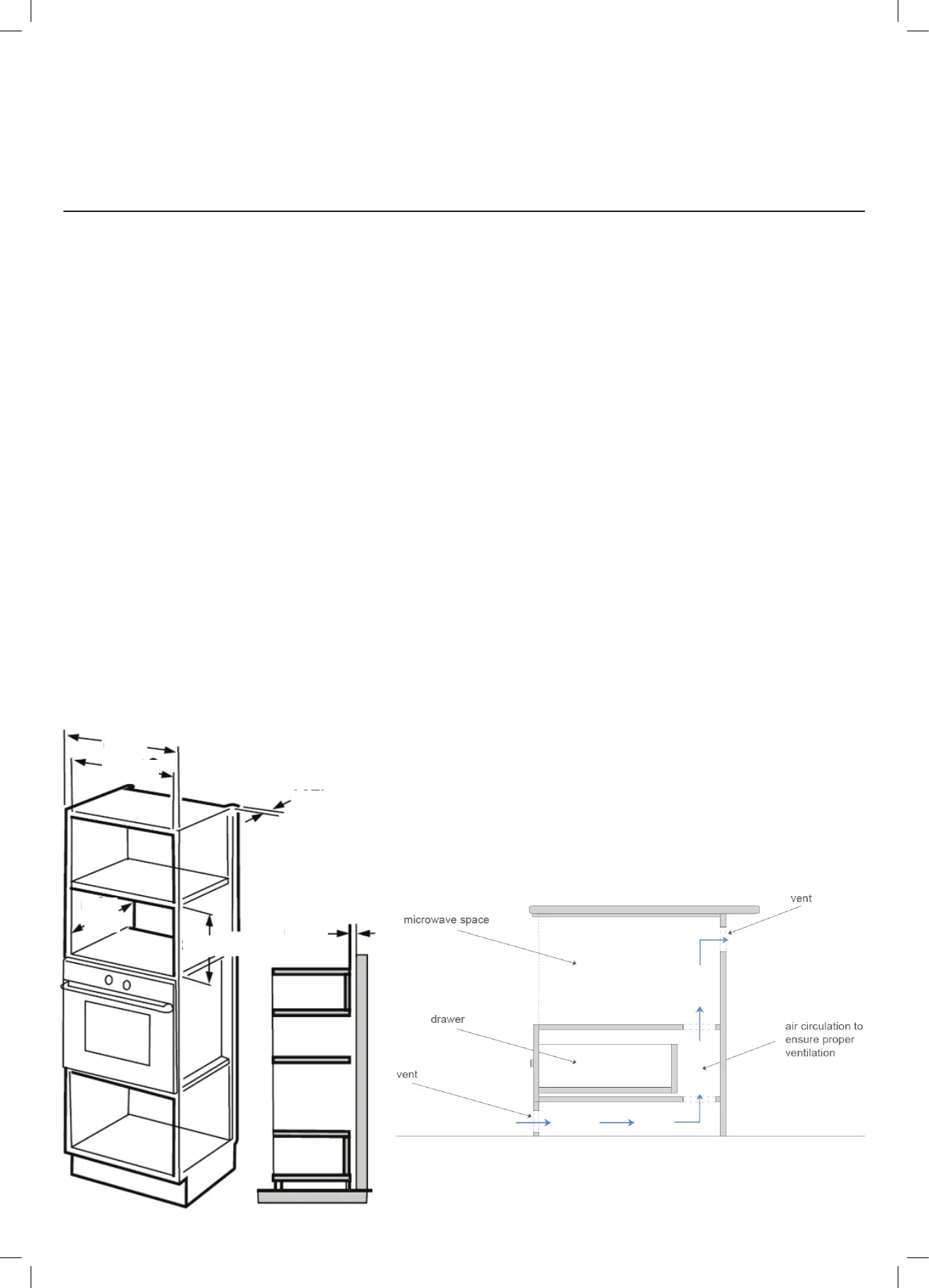 – A minimum 45mm space is required from the microwave cabinet to the