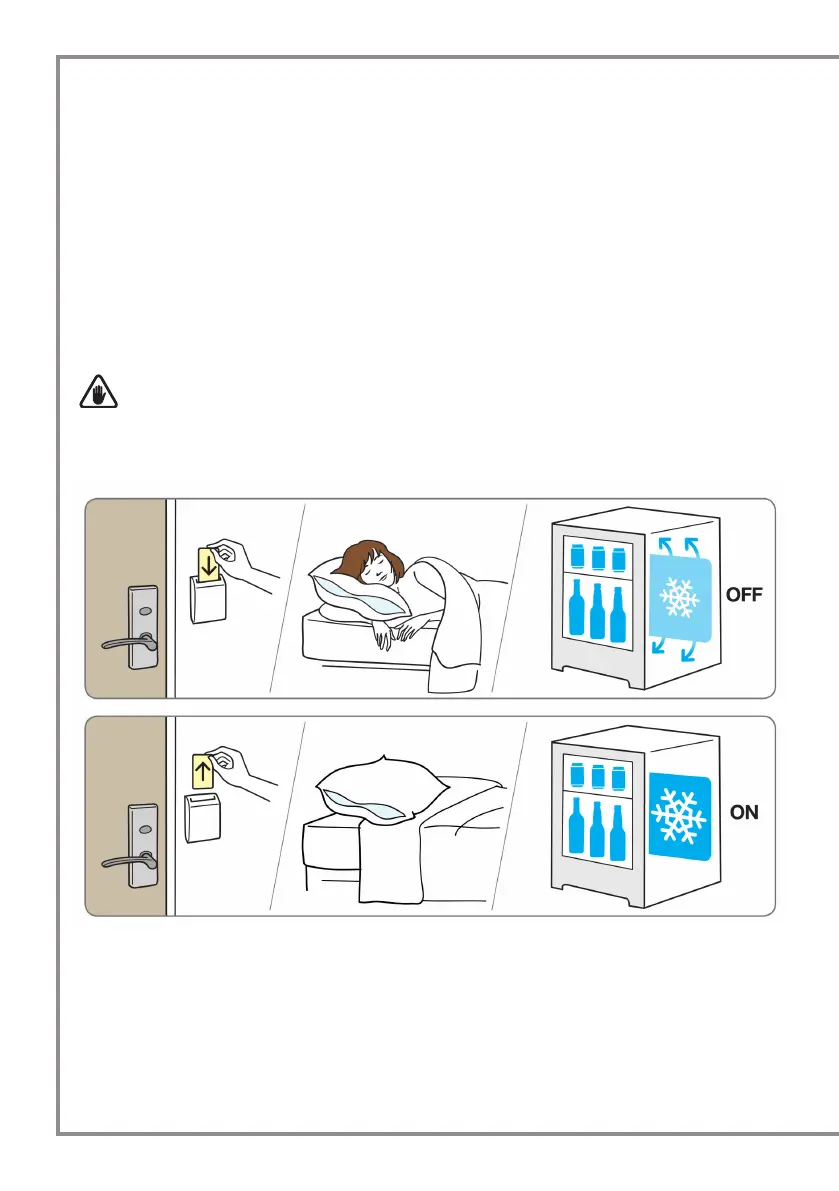 Smart un señal de presencia del huésped en la habitación y el compresor del Minibar se detiene. (Los