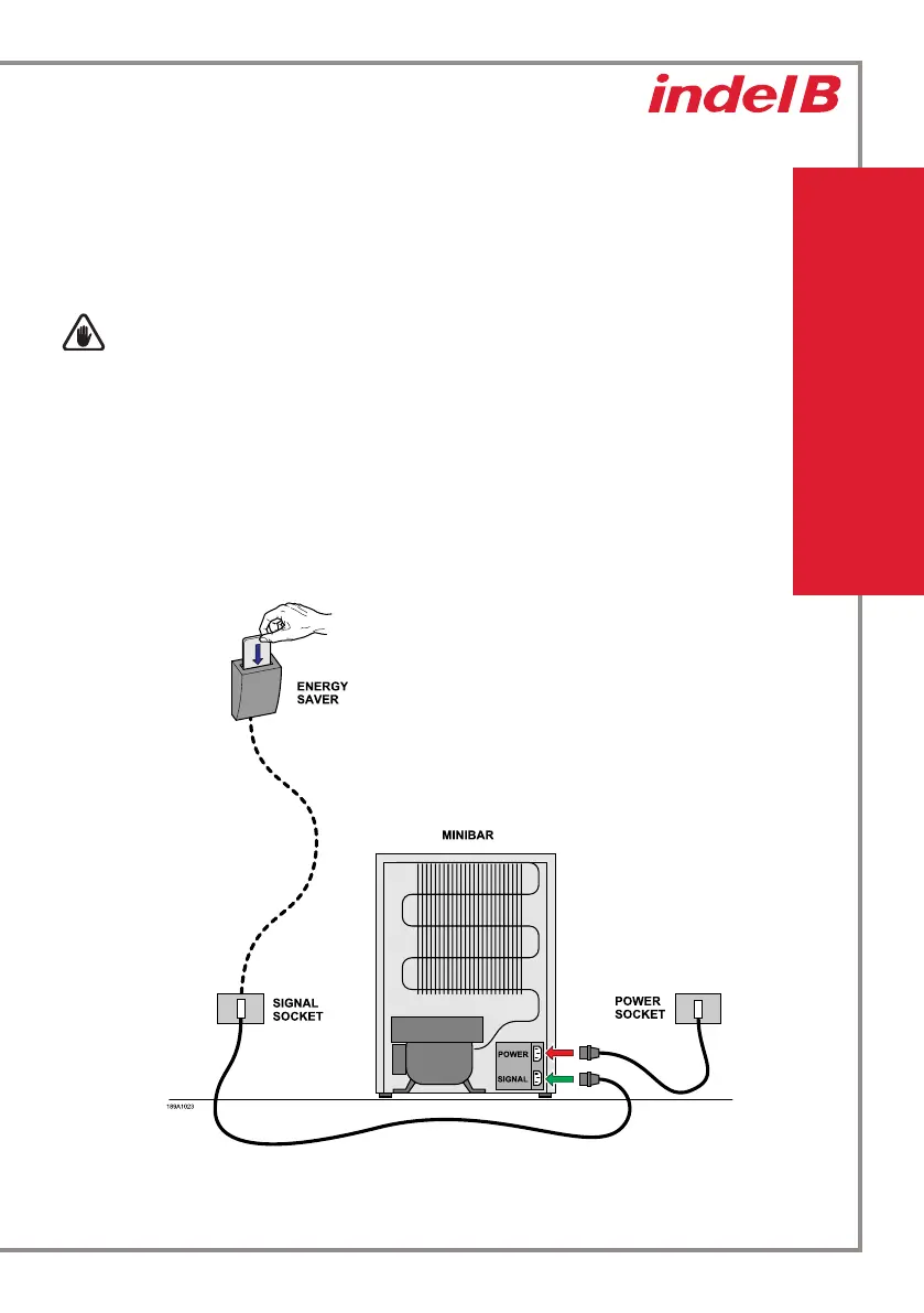 - Conecte el enchufe “POWER” a la toma de la habitación destinada al Minibar. (La toma no