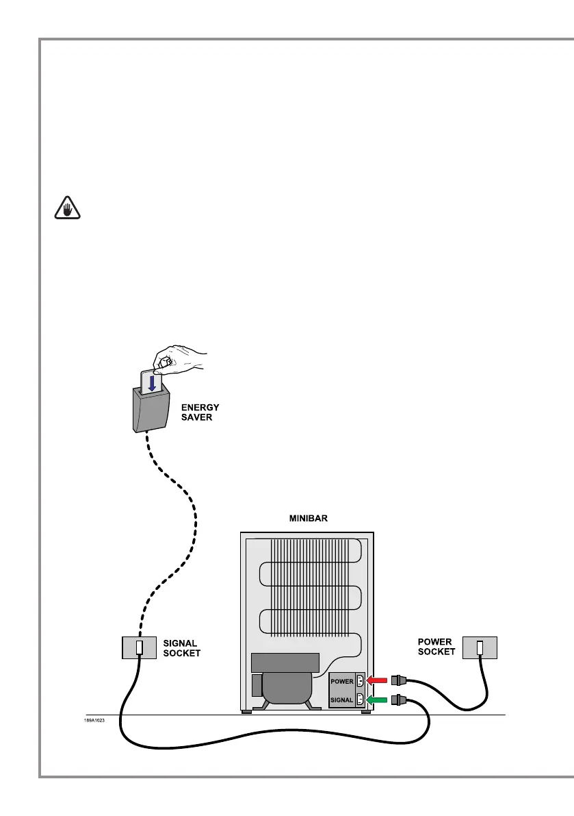 Connect the “POWER” plug to the socket in the room specically for the Minibar (socket not connected to