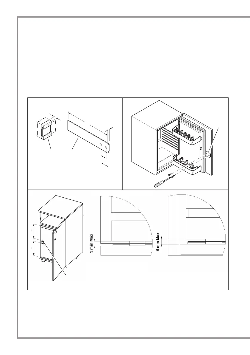 - atornillar la parte B en posición perfectamente horizontal sobre la parte interior de la puerta del mue-