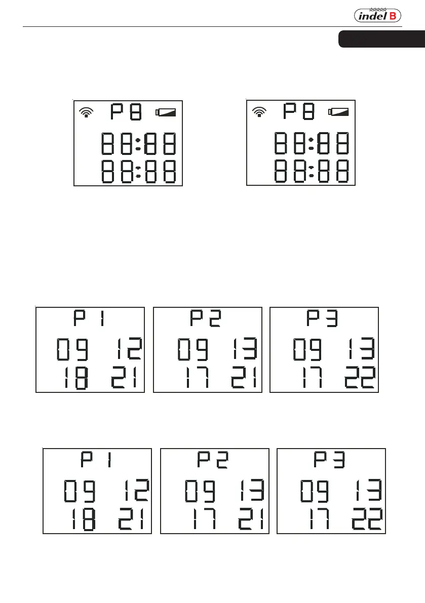 If you press the buttons P1, P2 or P3, the display will show the pre-set programmes as in the following