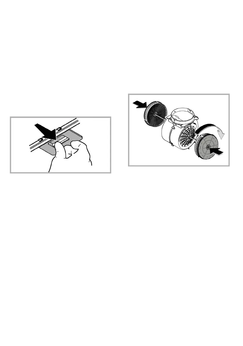 Per smontare il filtro grassi tirare la maniglia di sgancio a