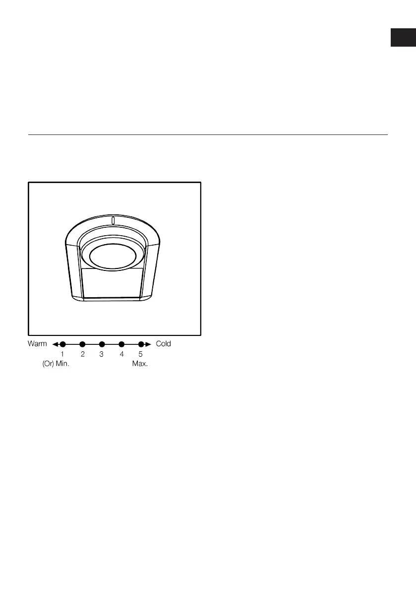 1=Lowest cooling setting (Warmest set-