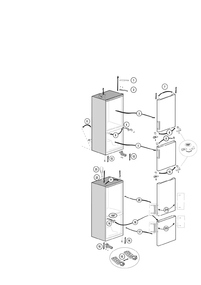 10- Unscrew and reposition the middle hinge bushing from fridge door. (8)