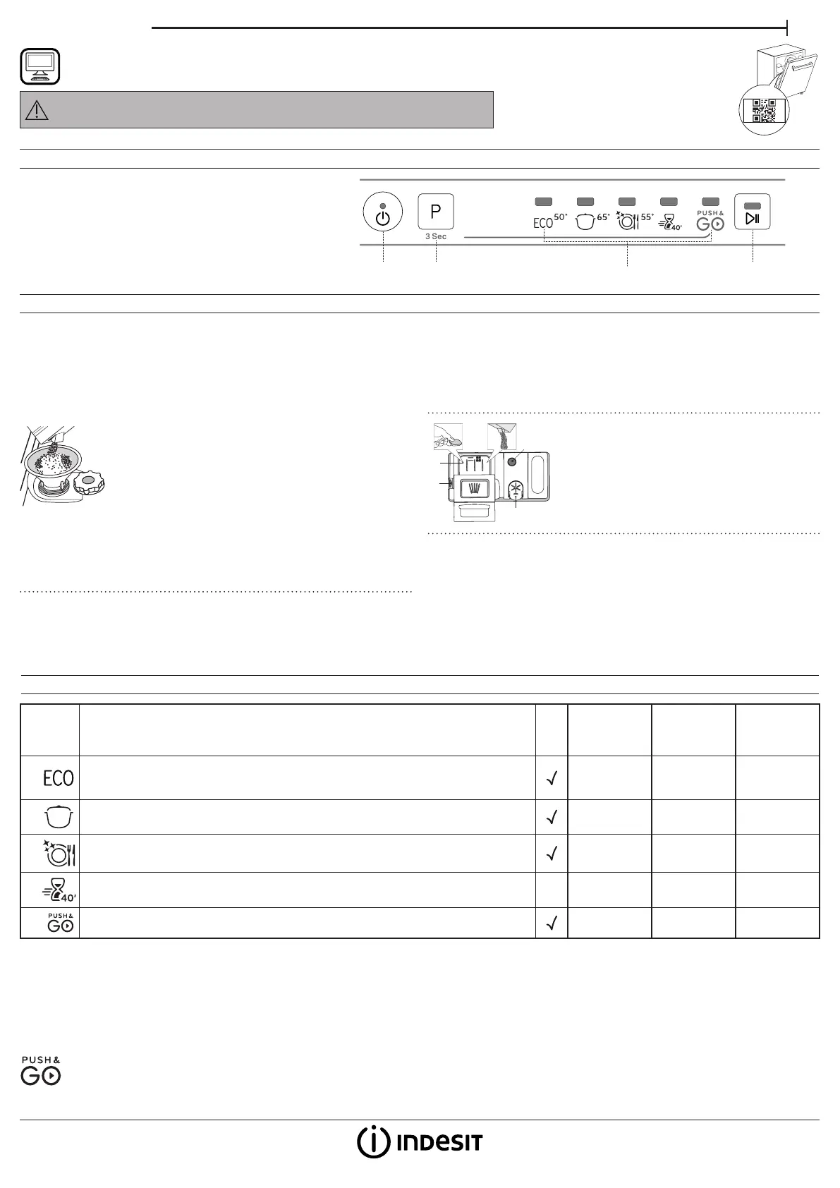 zajistit vynikající účinnost mytí v krátkém čase. Nemusíte si dělat starosti, který program vybrat, mycí cyklus „Push&GO“ udělá tuto práci za vás.