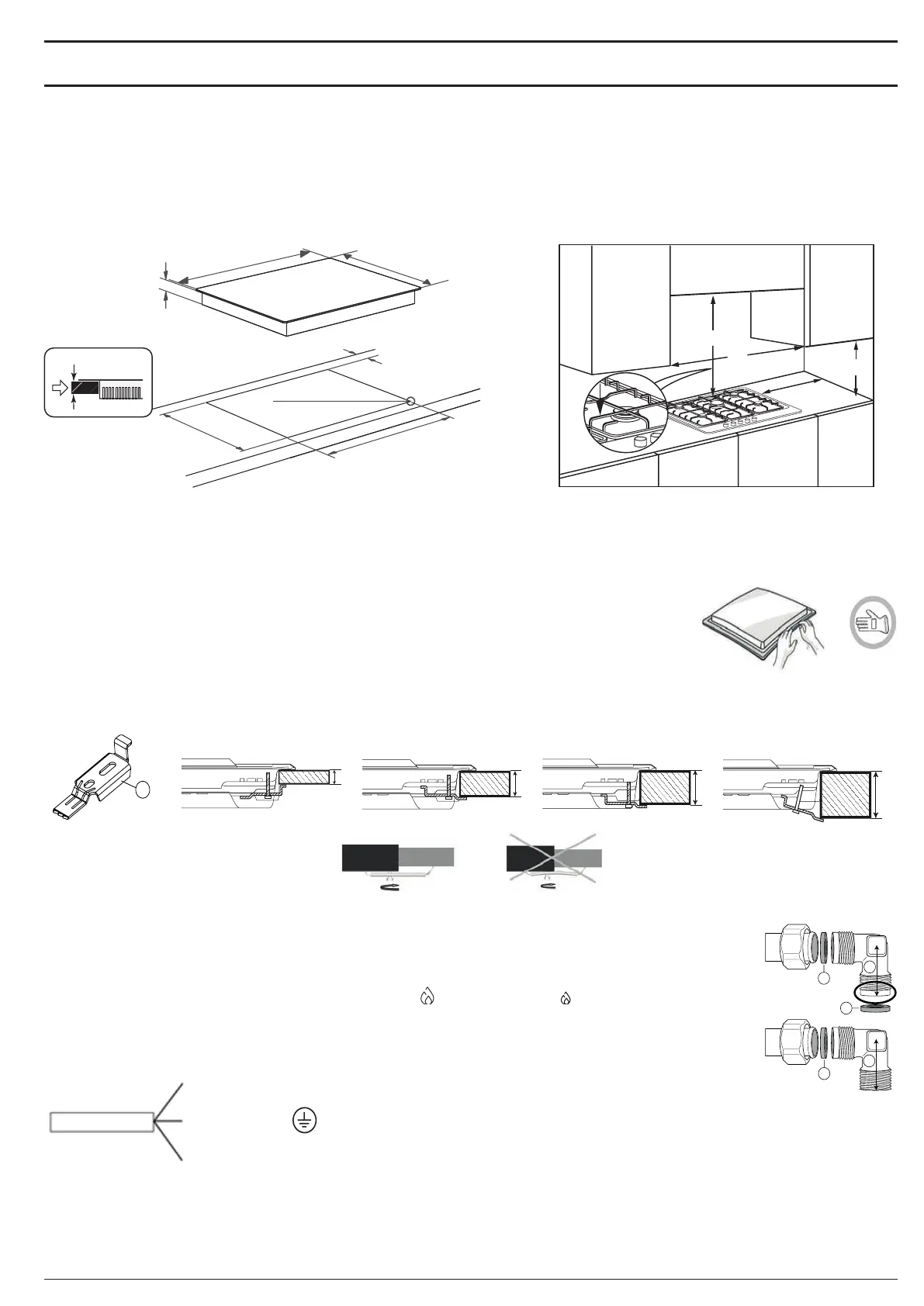 • Se sotto il piano di cottura non è previsto un forno, inserire un pannello separatore che abbia una supercie pari almeno all’apertura nel piano di lavoro. Tale