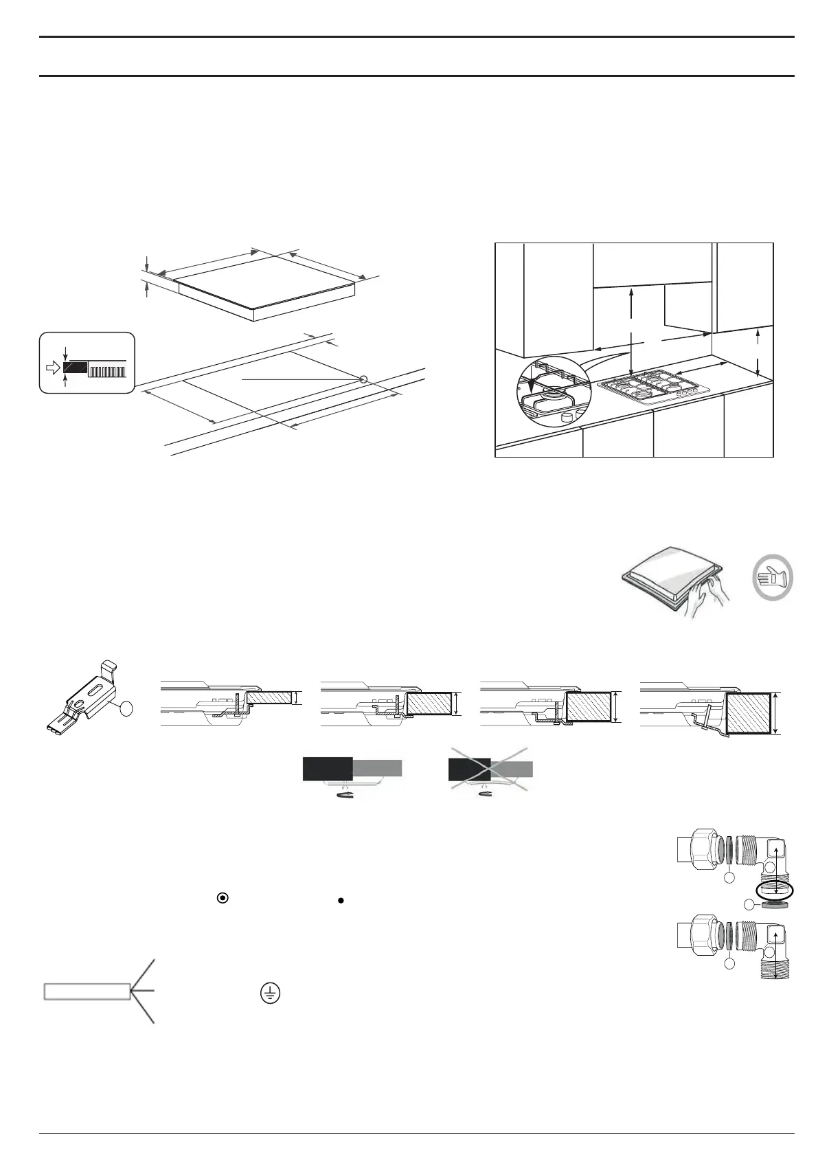 • Niniejsze urządzenie można osadzać w blatach roboczych o grubości od 20 do 60 mm.
