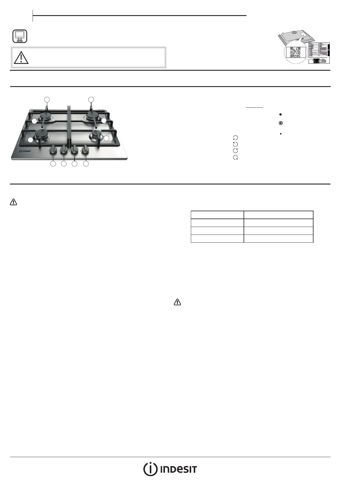 Якщо на варильну панель постачатиметься інший тип газу, ніж указано в табличці
